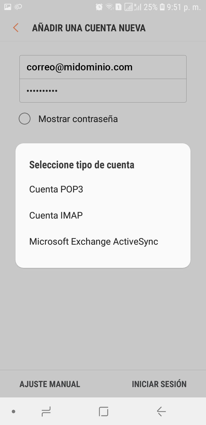 6. Saldrá una ventana en donde podremos especificar qué protocolo utilizaremos para el servidor de entrada. Las opciones disponibles para nuestra casilla serán IMAP o POP3. Para dispositivos móviles se recomienda IMAP.